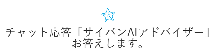「サイパンのおすすめのレストランは?」「おすすめのビーチは?」「現地の明日の天気は?」など 多言語AIアドバイザーがなんでもお応えいたします! あなたの素敵な旅をいつでもどこでもサポートします!