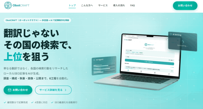 ・多言語でSEO記事をAIが自動生成する「ObotCRAFT」