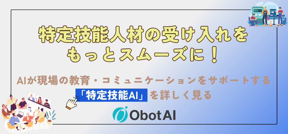 ▶特定技能外国人材のと定着をトータルサポート「登録支援機関ObotAI」