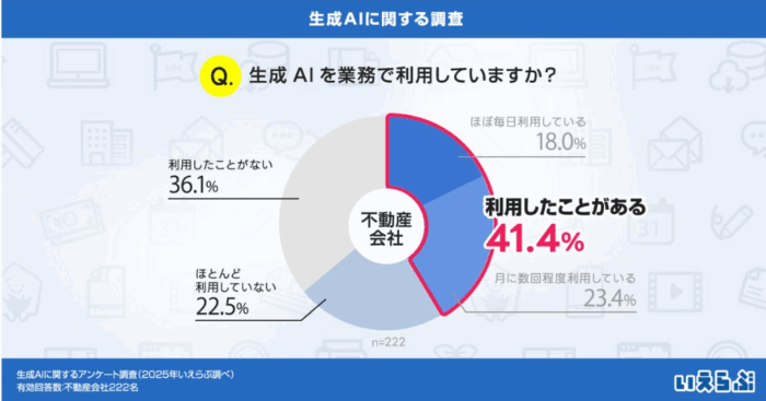 画像出典:生成AIを業務で利用している不動産会社は41.4%!|いえらぶ調べ