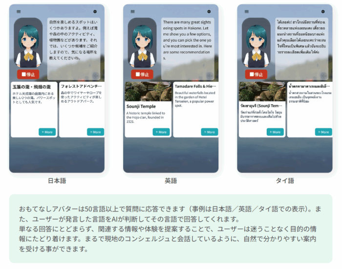 | 項目 | 従来のチャットボット | AIアバター(例:おもてなしアバター) |