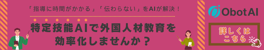 当社では、特定技能特化型AIソリューション「特定技能AI」を提供しています。「特定技能AI」には、外国人労働者とのコミュニケーション問題を解決する「チャットブリッジ」や、文字打ちした言葉が自動翻訳される「翻訳チャット」など、役に立つツールが揃っています。